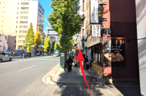 ③地下鉄関内駅通過 交差点を渡り「コナカ」を過ぎて直進すると「地下鉄関内駅」の3番出口が見えます。 地下鉄でお越しの方は3番出口から出て下さい。 ラーメン屋「田所商店」を過ぎるともうすぐ到着です。